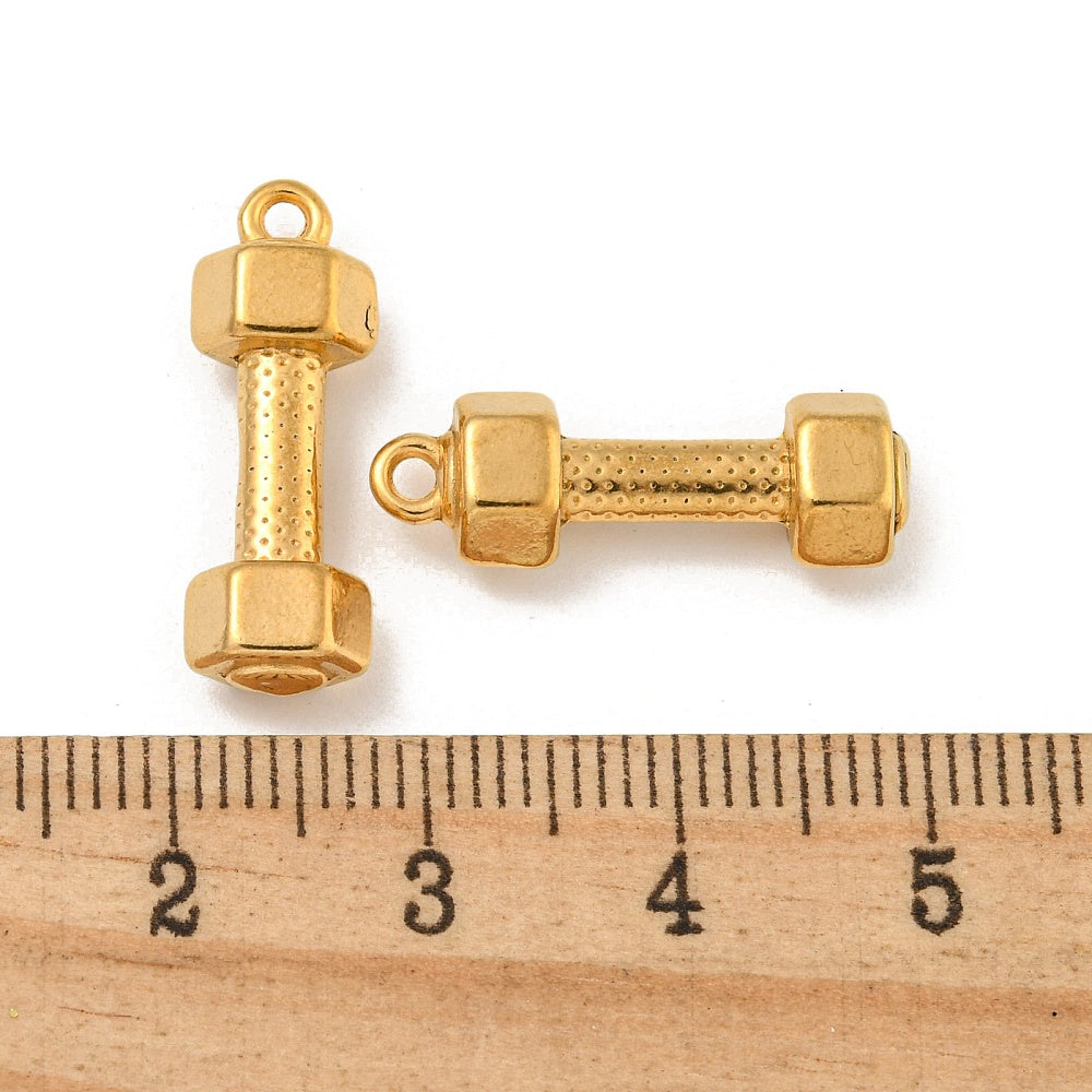 18k Gold Plated Stainless Steel Dumbbell Charm 21 x 7mm