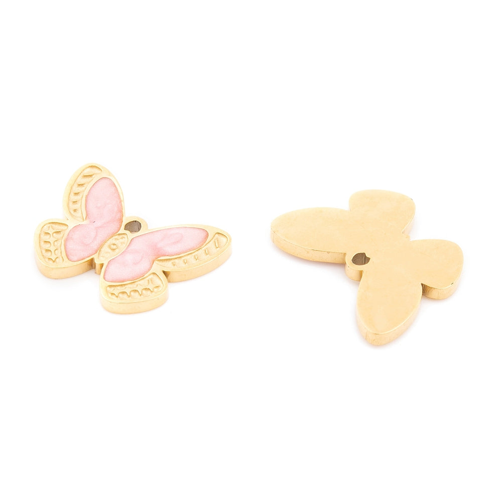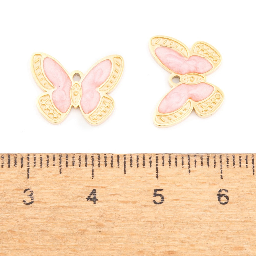 18k Gold Plated Stainless Steel Enamel Buterfly Charm 11.5x14mm