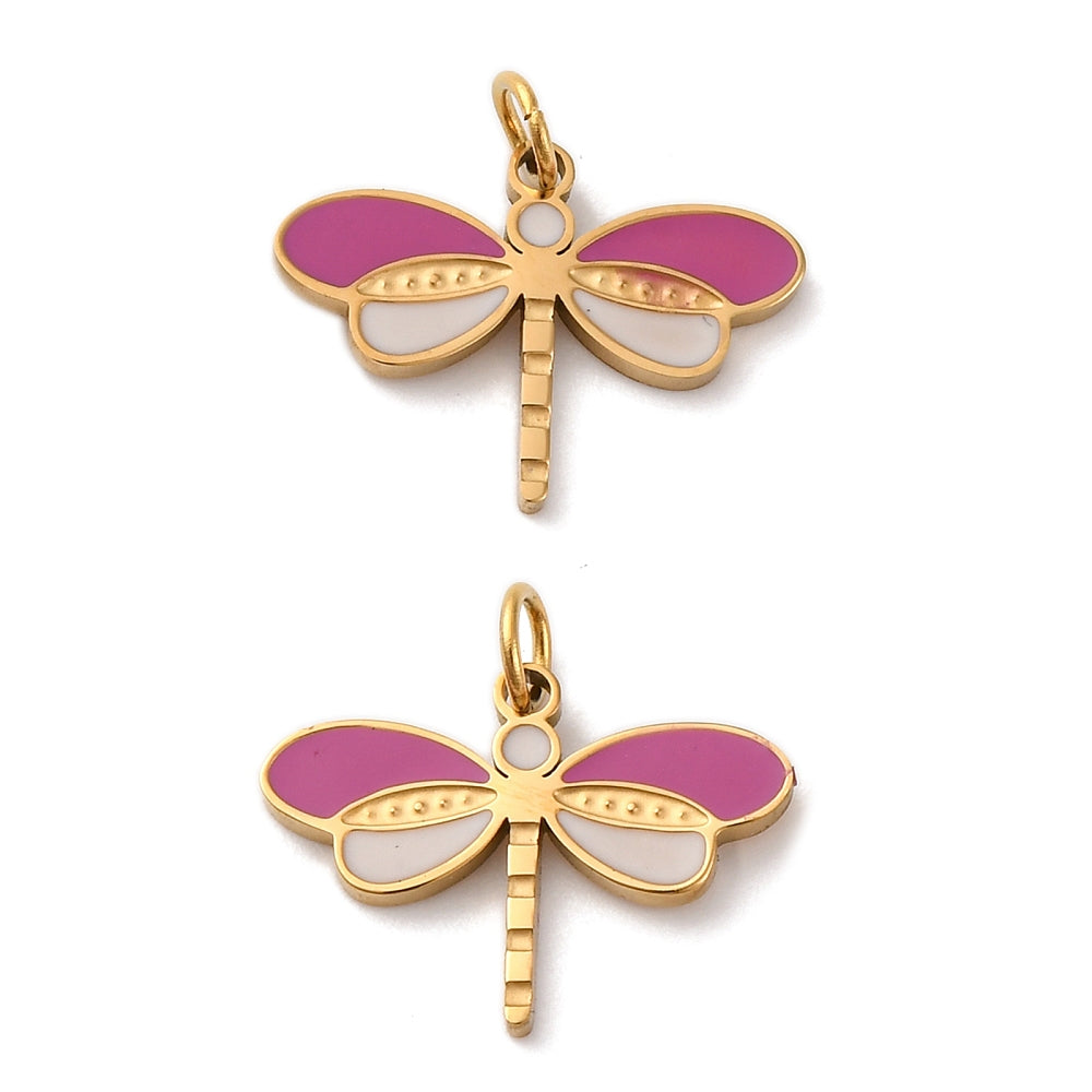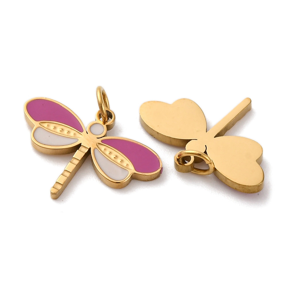 18k Gold Plated Stainless Steel Enamel Dragonfly Charm 11.5x16mm