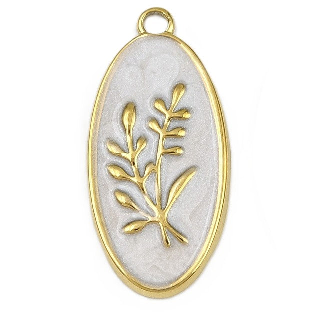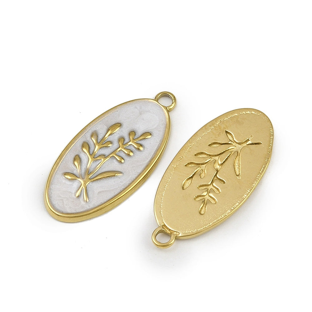 18k Gold Plated Stainless Steel Enamel OvalFlower Charm 24 x 11mm