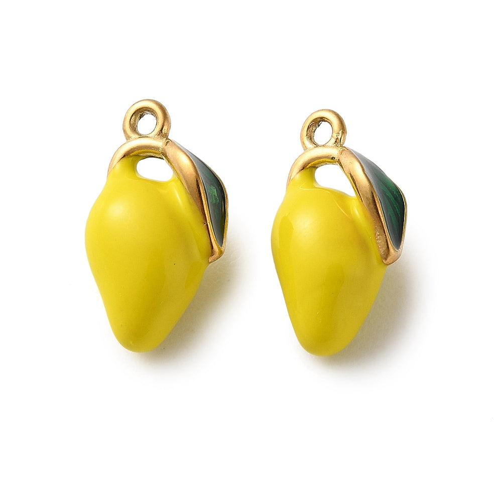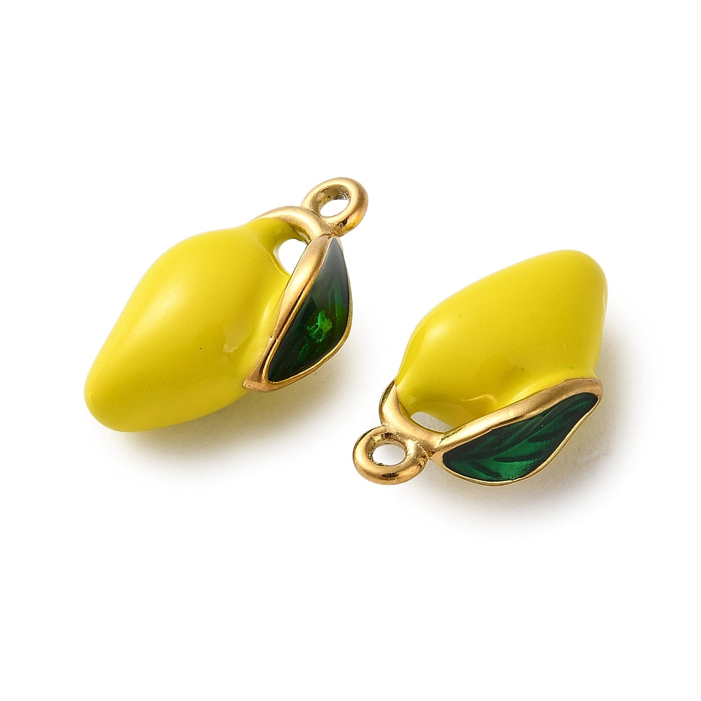 18k Gold Plated Stainless Steel Enamel Lemon Charm 21 x 3mm