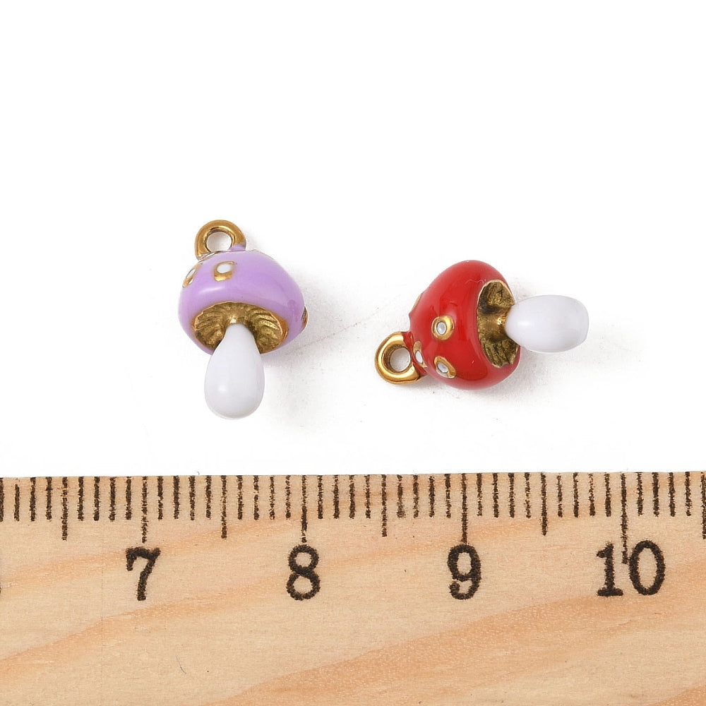 18k Gold Plated Stainless Steel Enamel Mushroom Charm 14 x 8.5mm