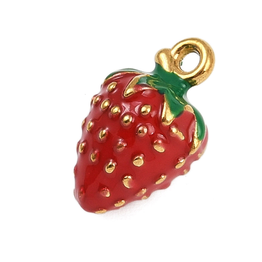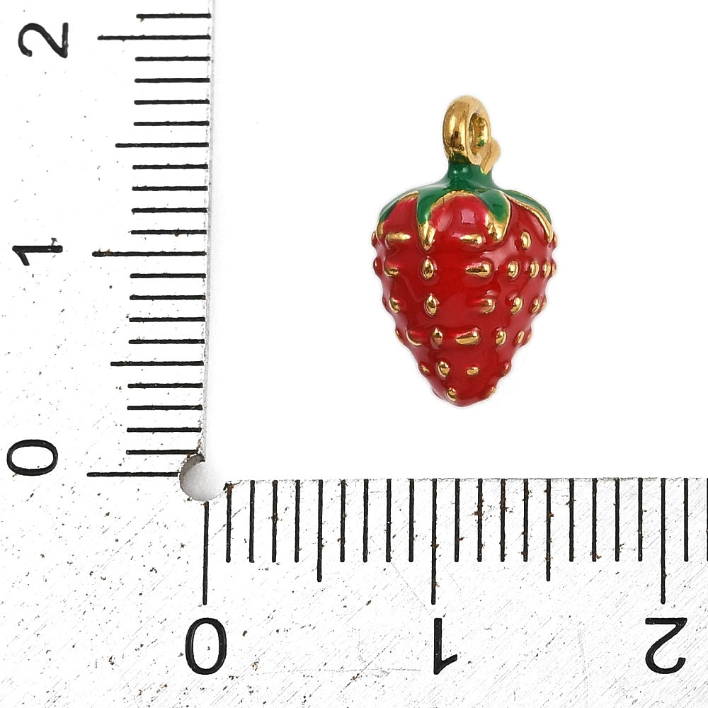 18k Gold Plated Stainless Steel Enamel Strawberry Charm 14 x 8.5mm