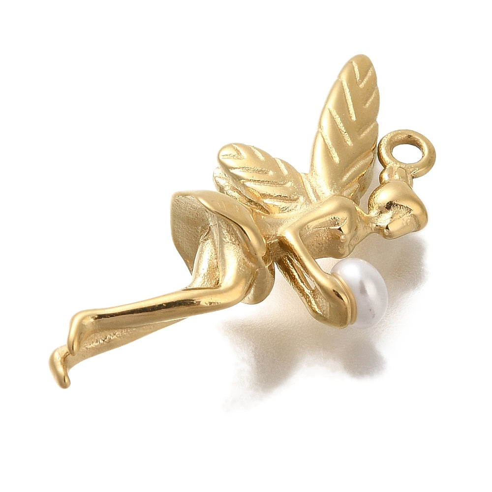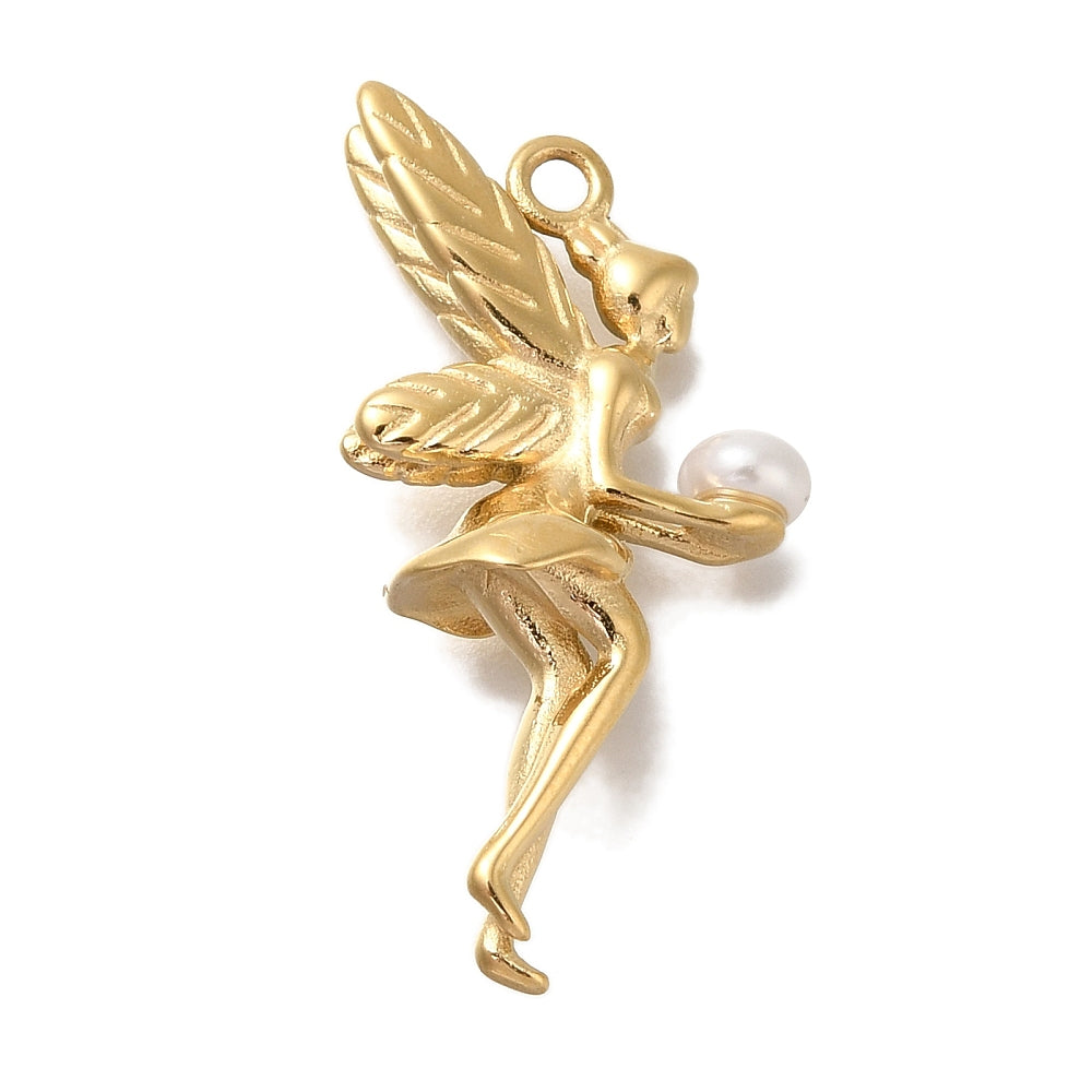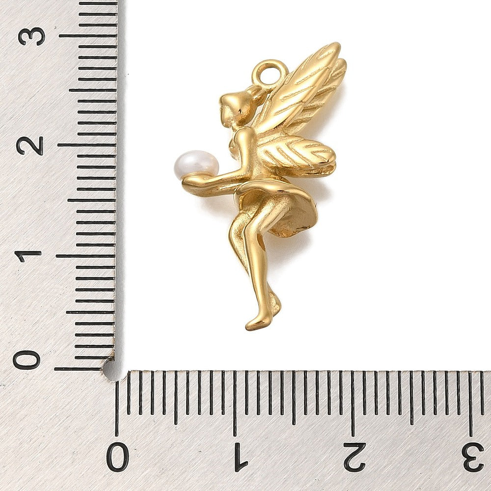 18k Gold Plated Stainless Steel Fairy Charm with Pearl 25x17mm