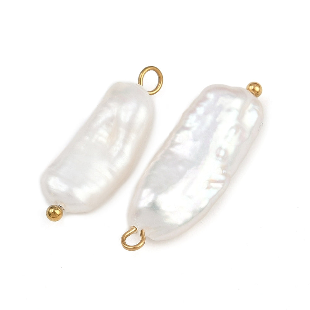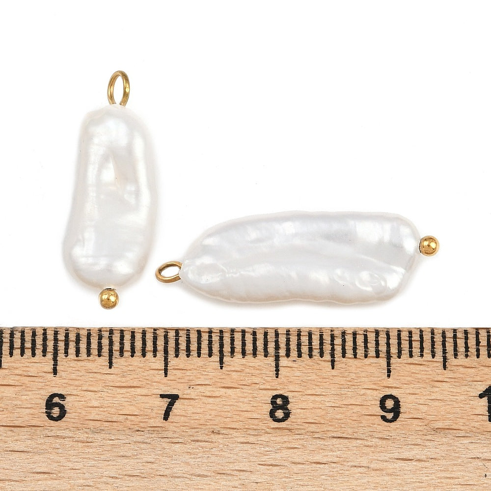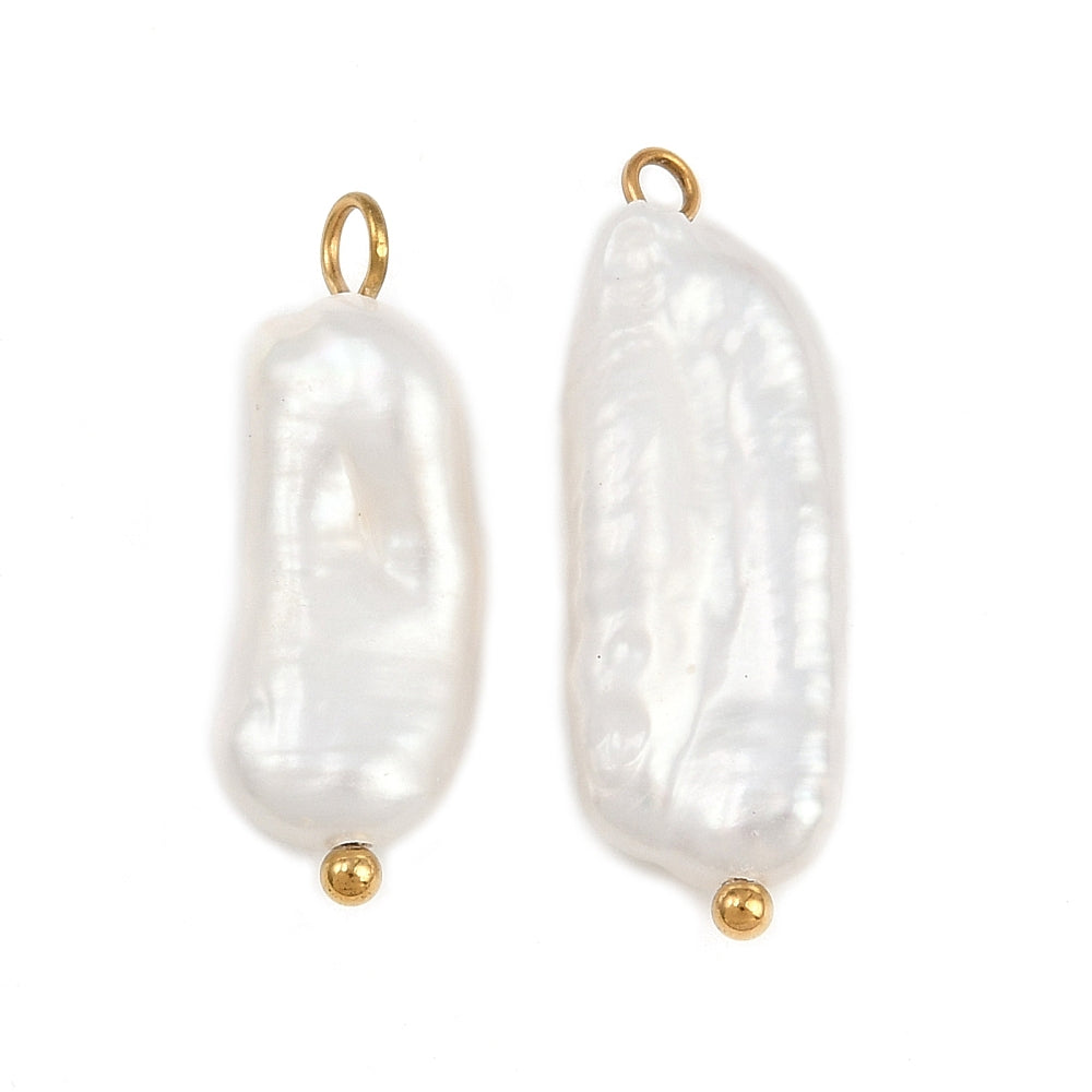 18k Gold Plated Stainless Steel Fresh Water Pearl Keshi Nugget Charm or Pendant approx 20.5x10mm