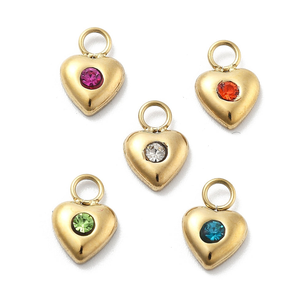 18k Gold Plated Stainless Steel Heart with Rhinestone Charm Assorted Colour 11x 6mm