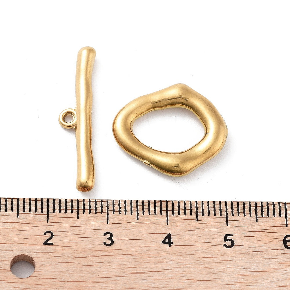 Crafted from durable stainless steel and finished in luxurious 18k gold plating, this 27x6mm toggle combines timeless elegance with everyday wearability.