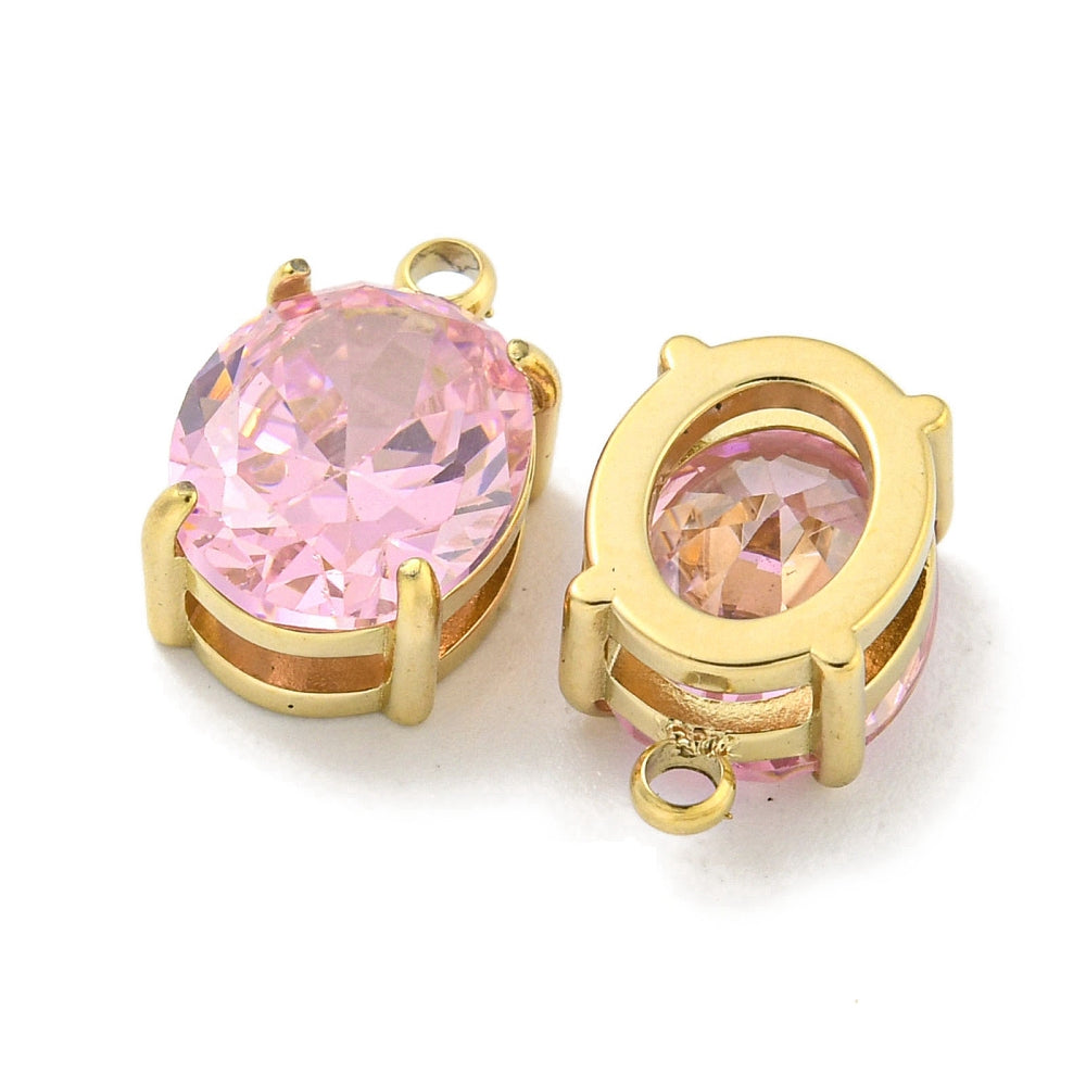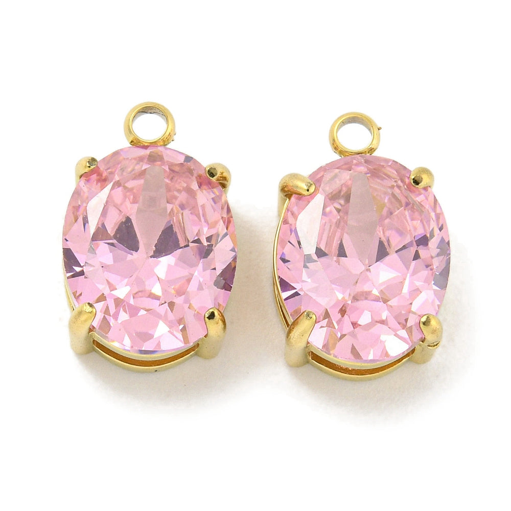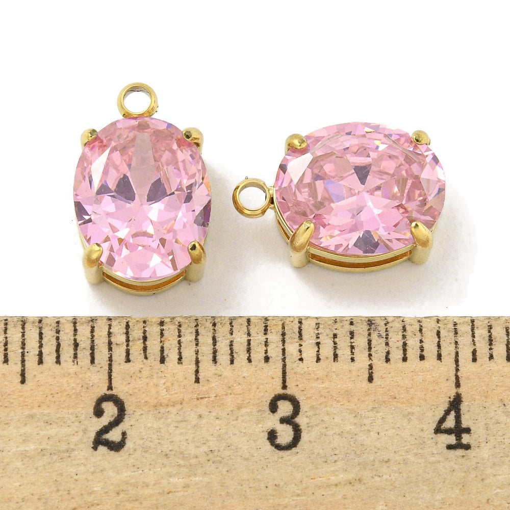 18k Gold Plated Stainless Steel Pink Oval Zirconia Charm 12.5x8mm