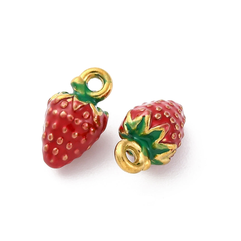 Crafted from durable stainless steel, it features a realistic strawberry design in a compact 11x6mm size—perfect for bracelets, necklaces, or charm collections.