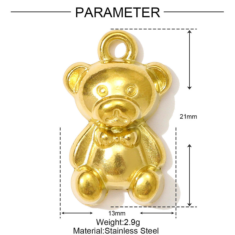 Adorable teddy bear charm crafted from durable stainless steel with a luxurious 18k gold plating that resists tarnishing and fading.