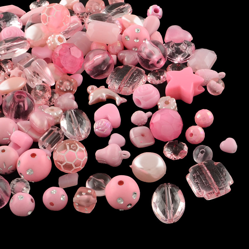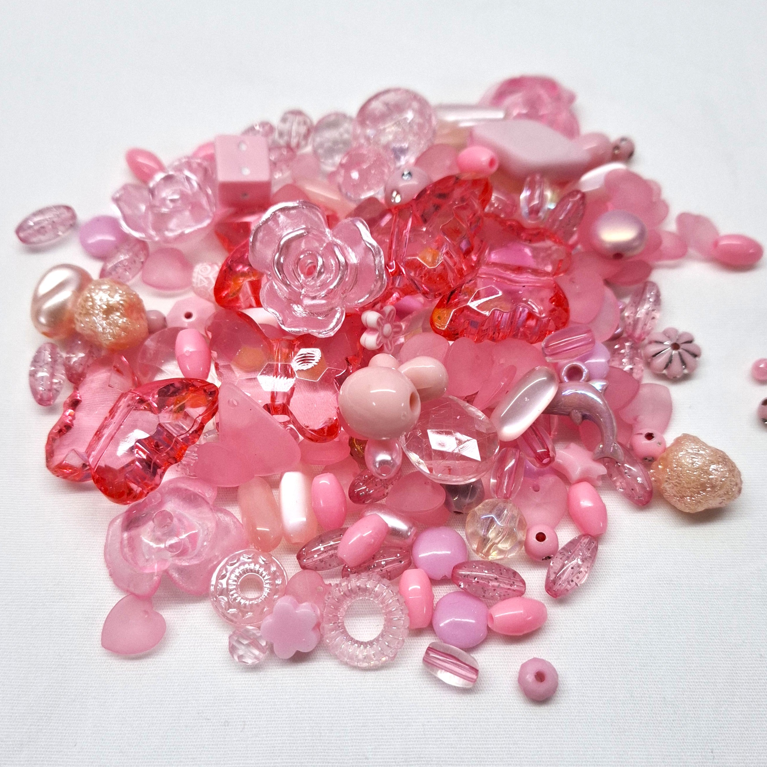 Beautiful beads in a wide variety of colours, sizes and shapes. This is a random mix of pink beads and each packet will be different. Colours, shapes and sizes will vary in each lot.