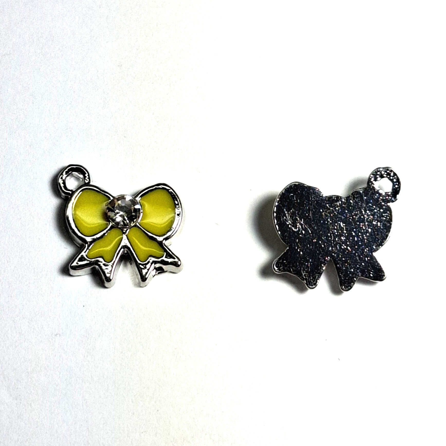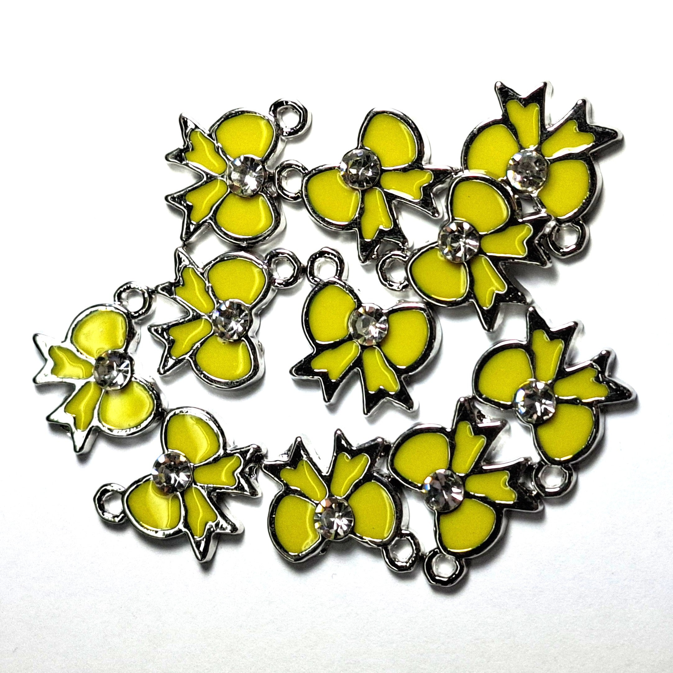 Charm Bow Yellow Enamel with Rhinestone 19x17mm LCF Silver