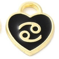 Charm Cancer Heart Black Enamel 14x12 Light Gold