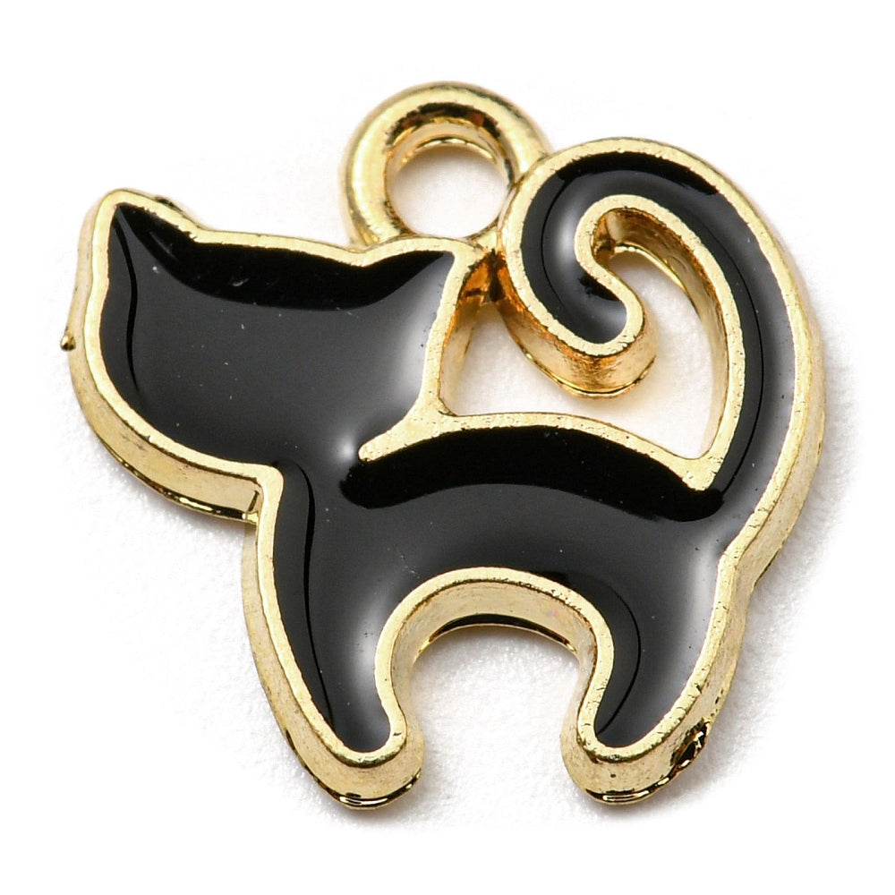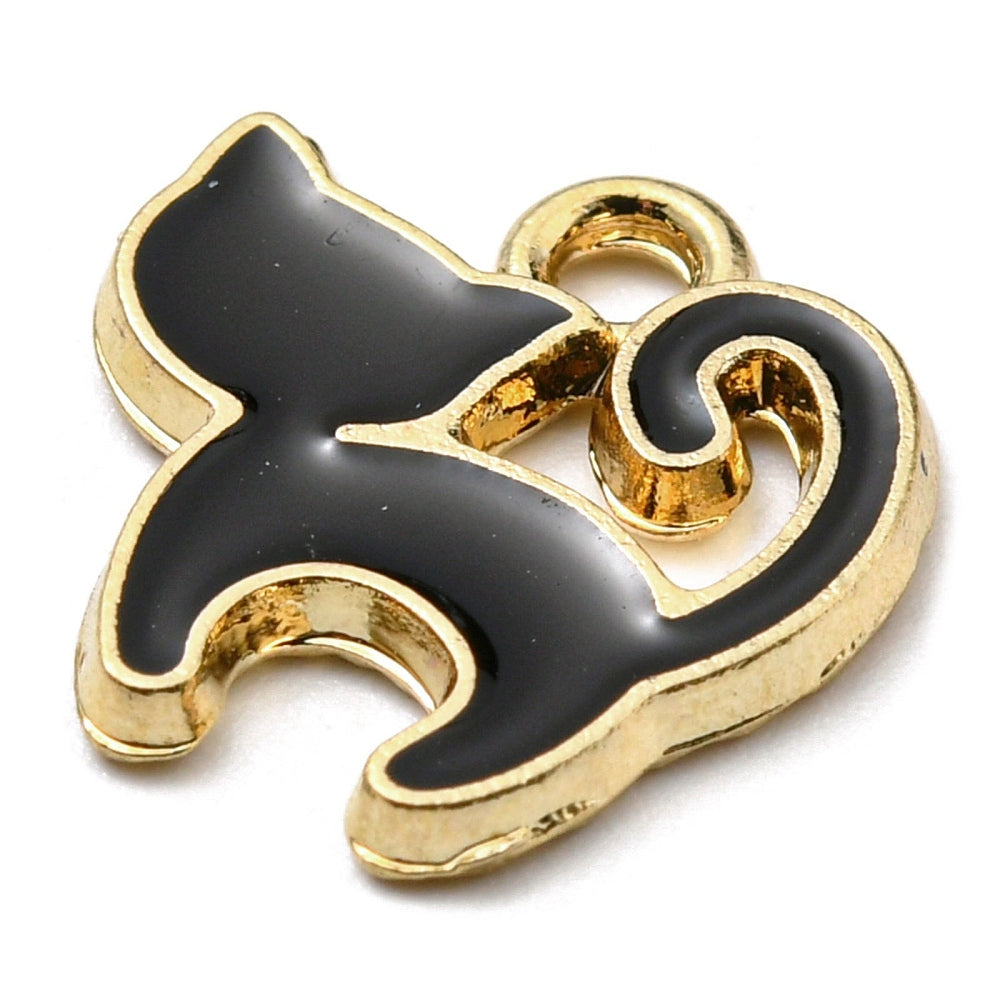 Charm Cute Kitty 13x13 Black Enamel CNLF Gold