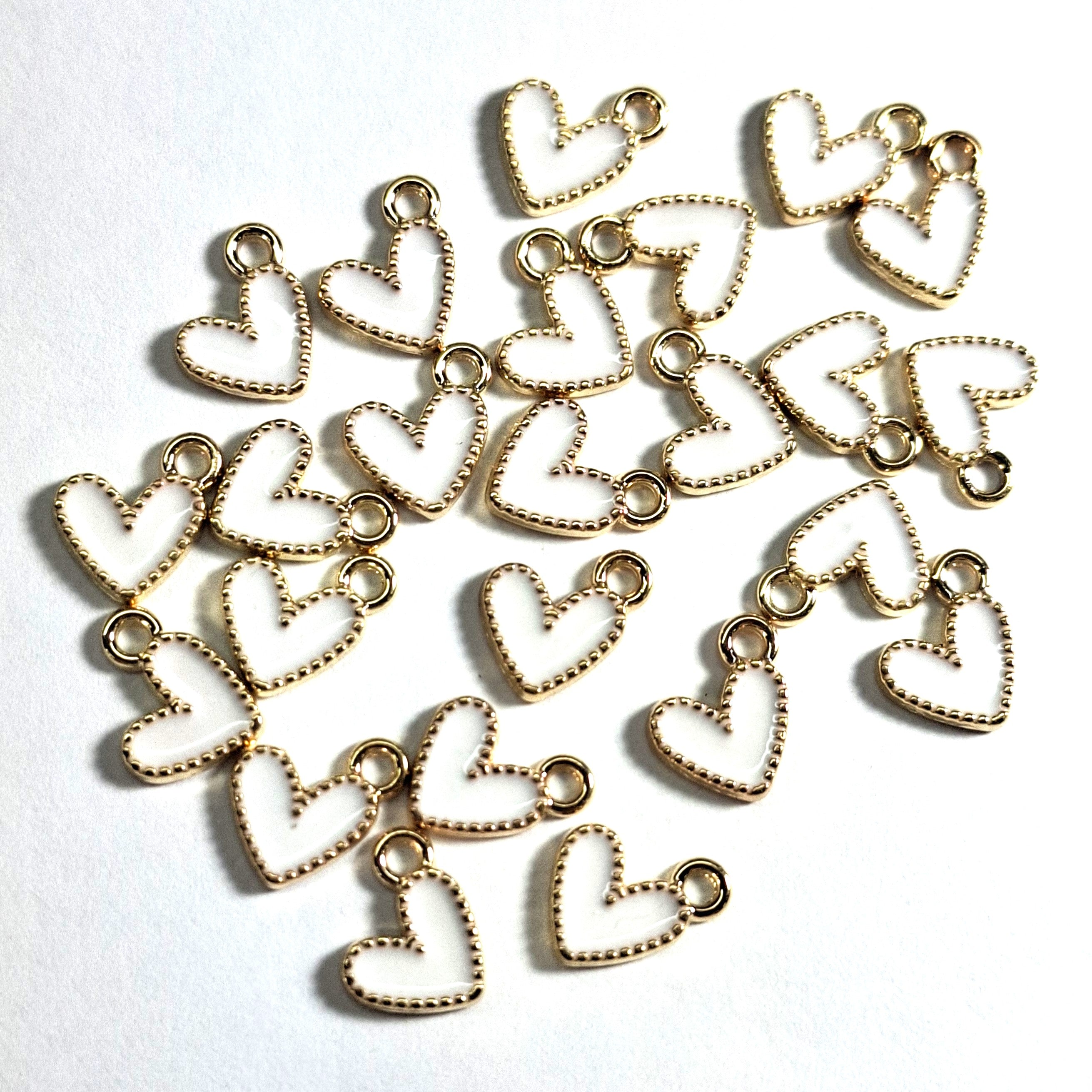 Charm Funky Heart White Enamel 10x9 Light Gold