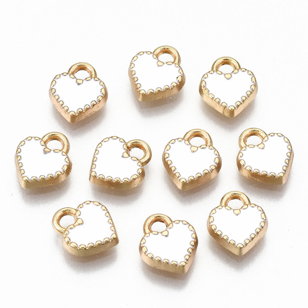Charm Heart 8.5x7.5 White Enamel CLF Gold each