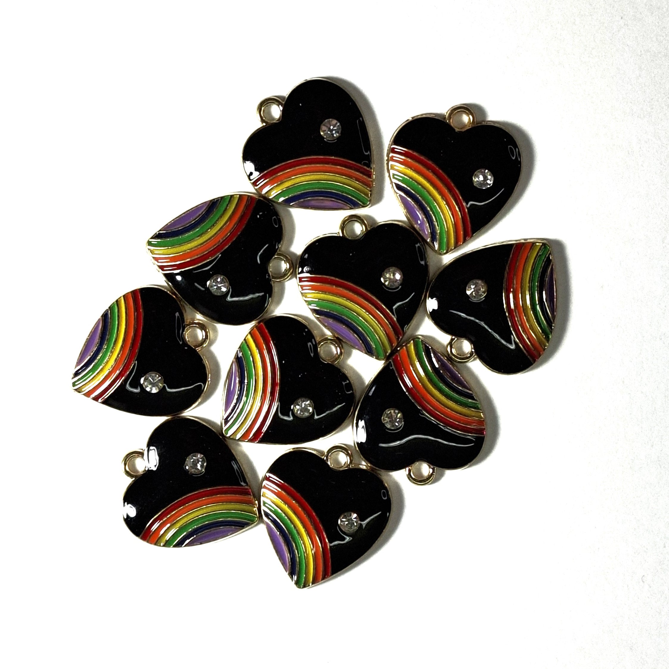 Charm Heart Black 20x18 Enamel with Rainbow and Rhinestone Gold - is backordered and will ship as soon as it is back in stock.