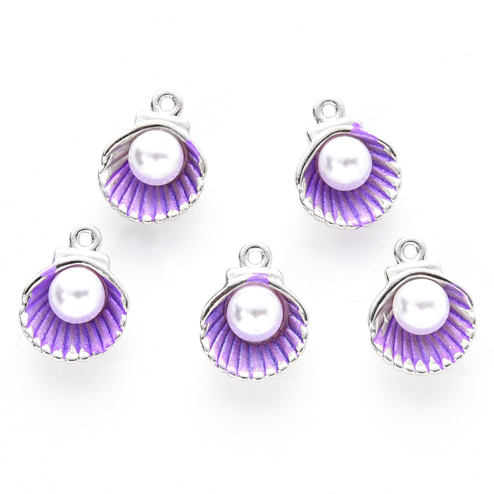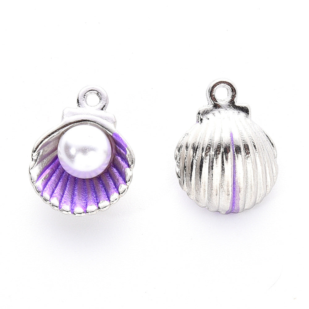 Charm Pearl in Shell 14.5x11.5 Purple Enamel CLF Platinum