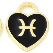 Charm Pisces Heart Black Enamel 14x12 Light Gold