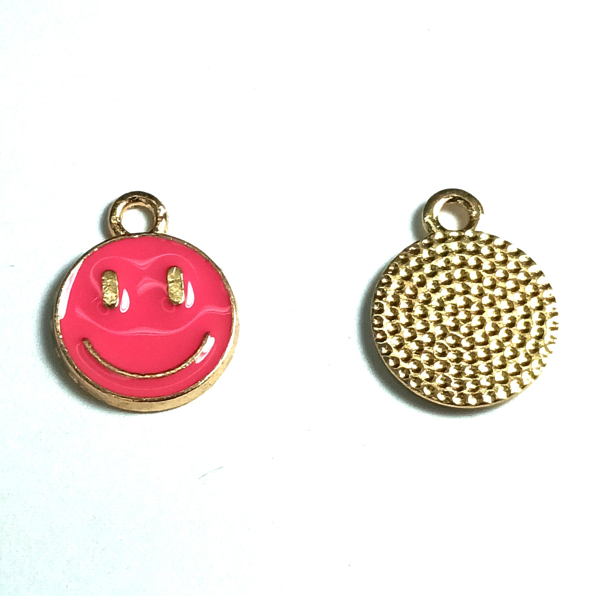Charm Smiley Face 14.5x12 Pink Enamel Gold