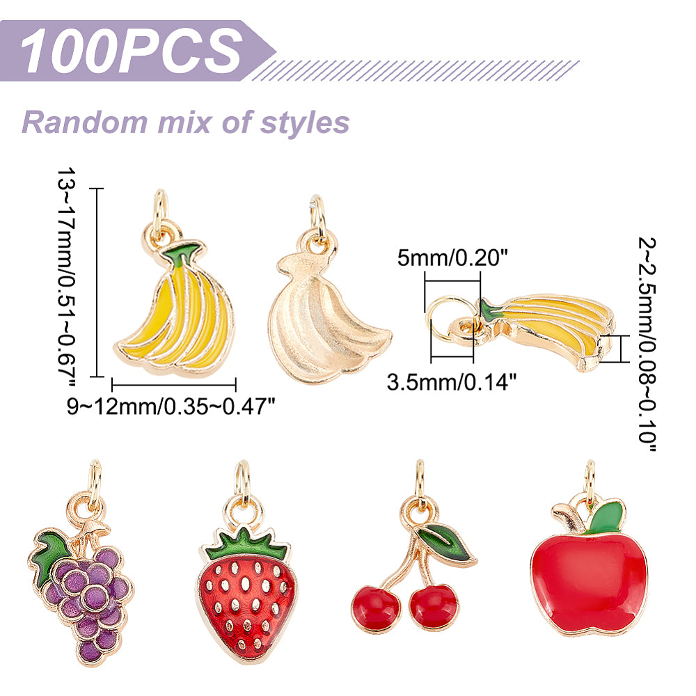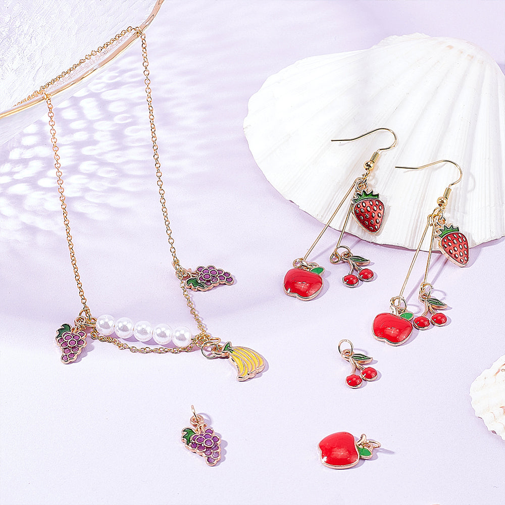 Charm Strawberry Enamel Light Gold. Cute fruit charms