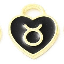 Charm Taurus Heart Black Enamel 14x12 Light Gold