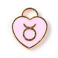 Charm Taurus Heart Pink Enamel 14x12 Light Gold