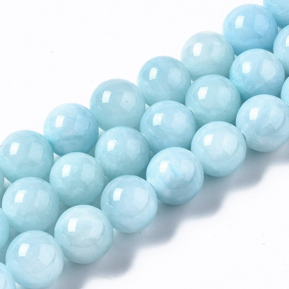 Jade Natural Dyed Round Pastel Blue 10mm approx. 40 beads 37cm Strand