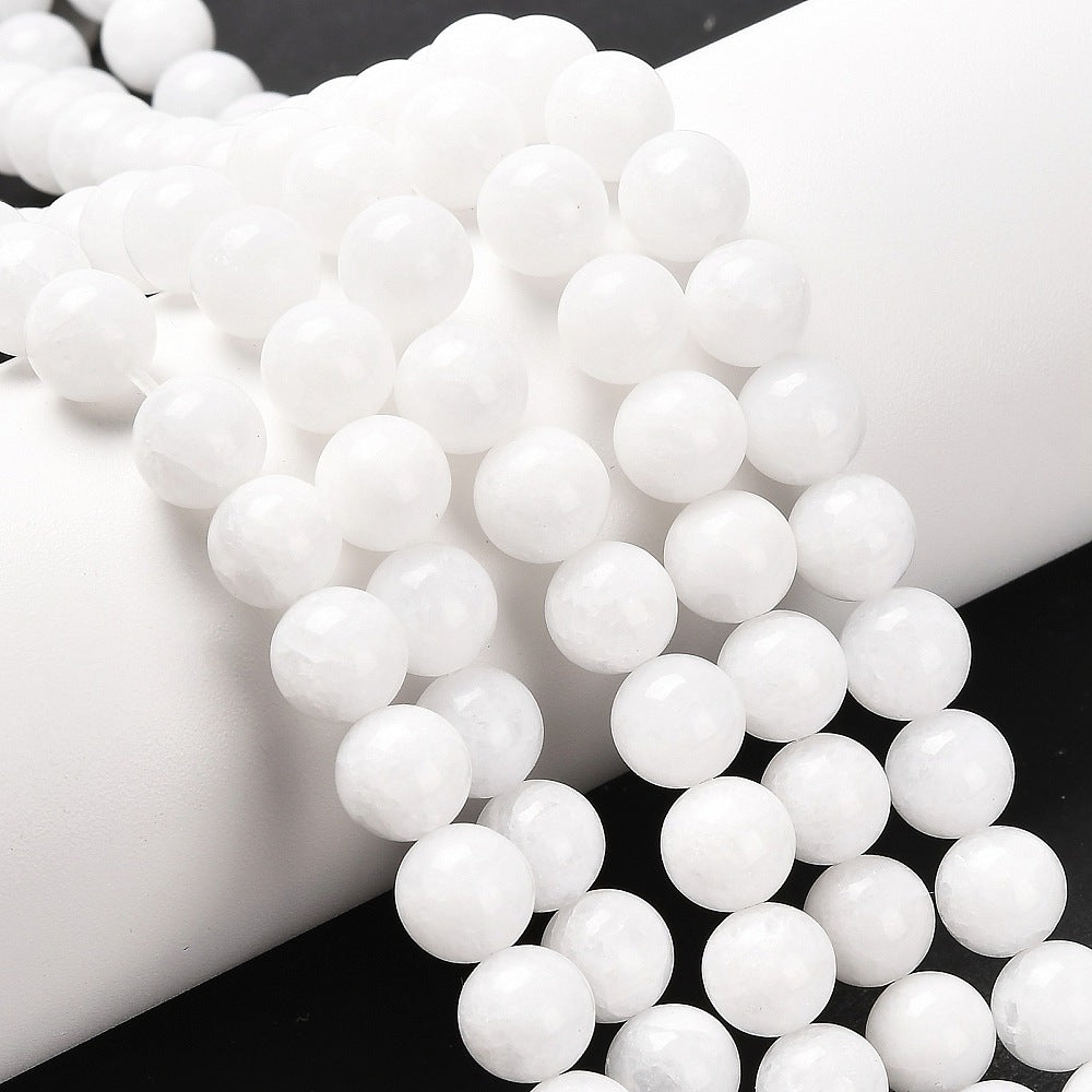 Elevate your jewellery designs with these stunning natural dyed jade beads. Each 8mm round bead showcases the serene beauty of white jade, perfect for creating sophisticated bracelets, necklaces, and mixed-media pieces.