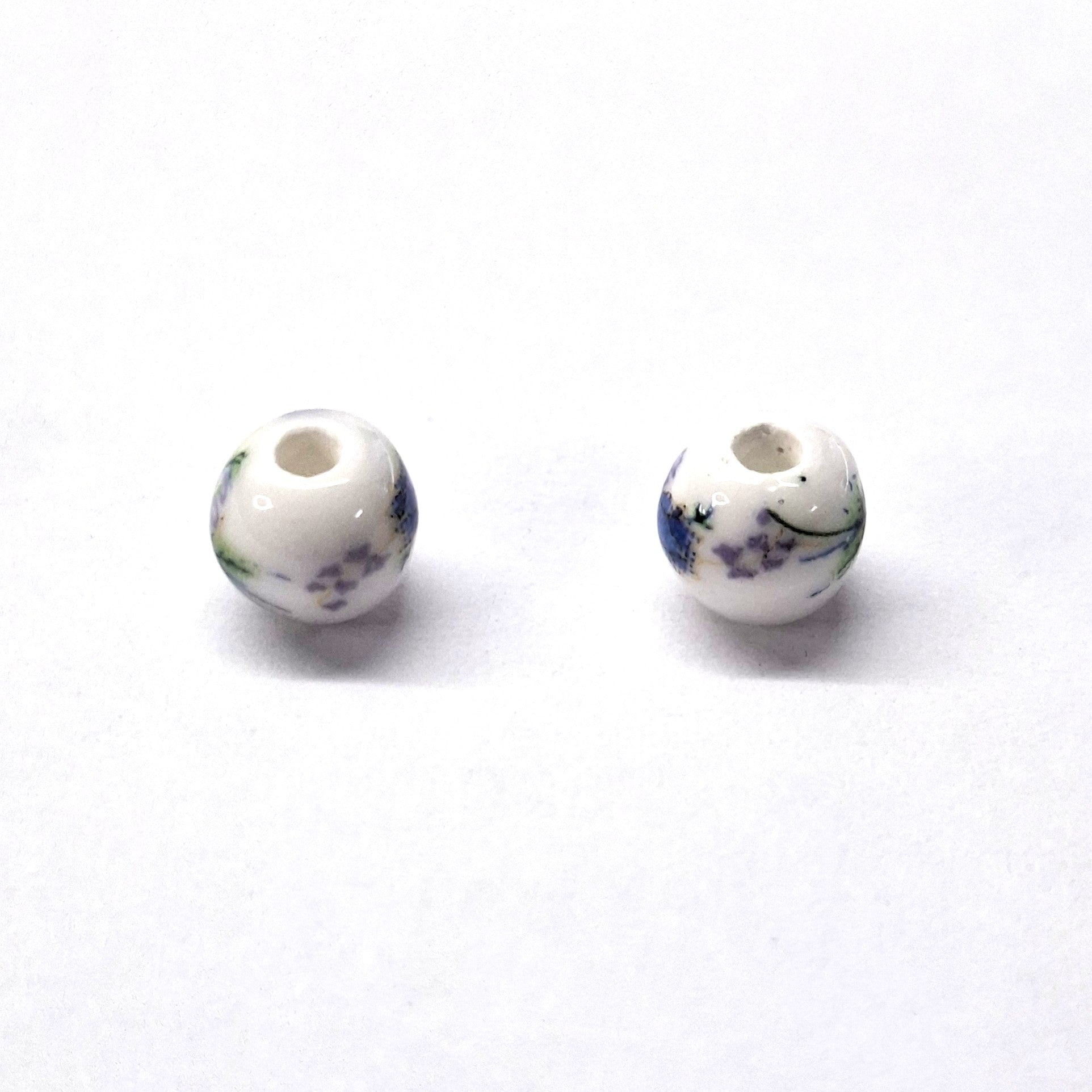 Porcelain Bead 6mm Round Blue/Green Handmade Hole 2mm per each