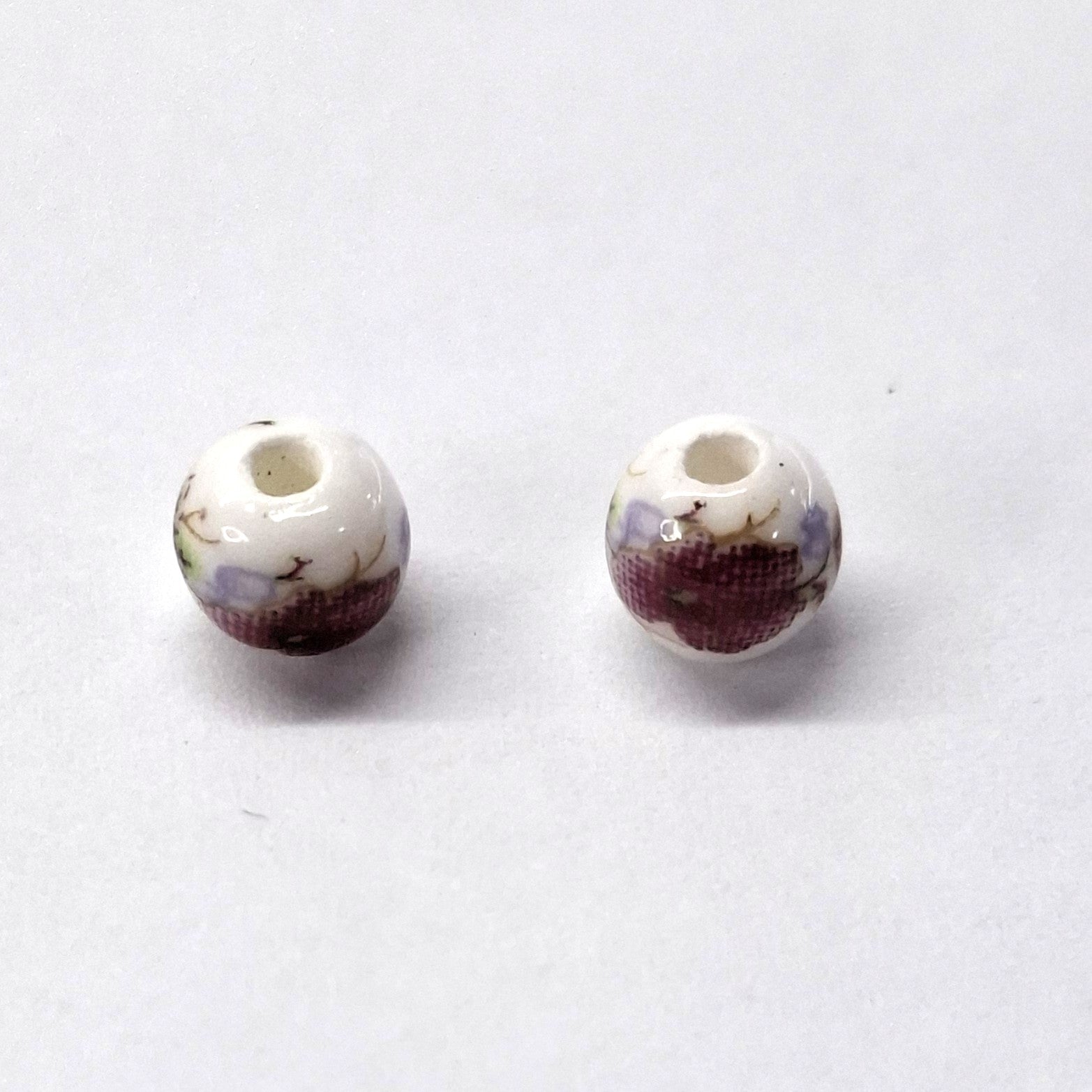 Porcelain Bead 6mm Round Pink/White Handmade Hole 2mm per each