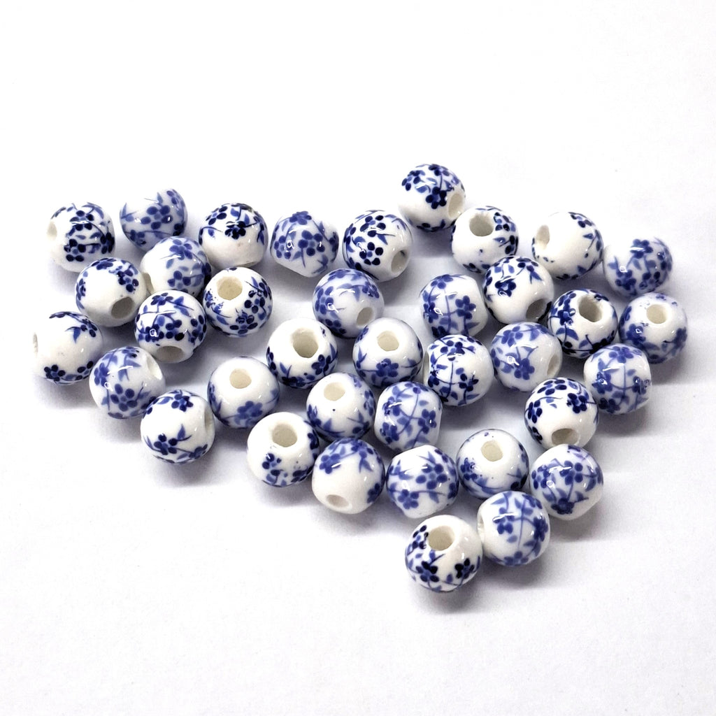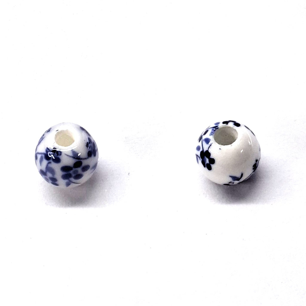 Porcelain Bead 6mm Round Dark Blue Handmade Hole 2mm per each