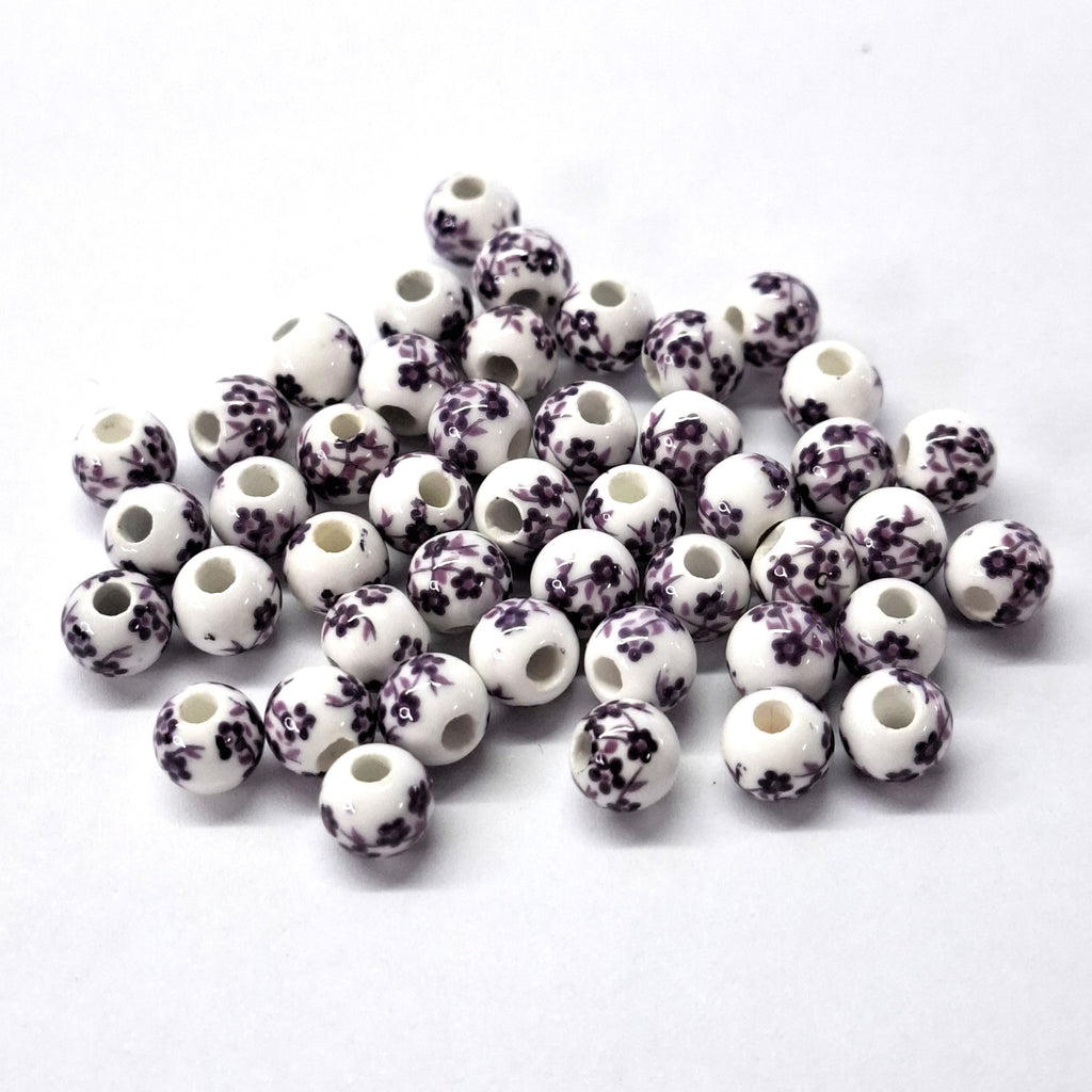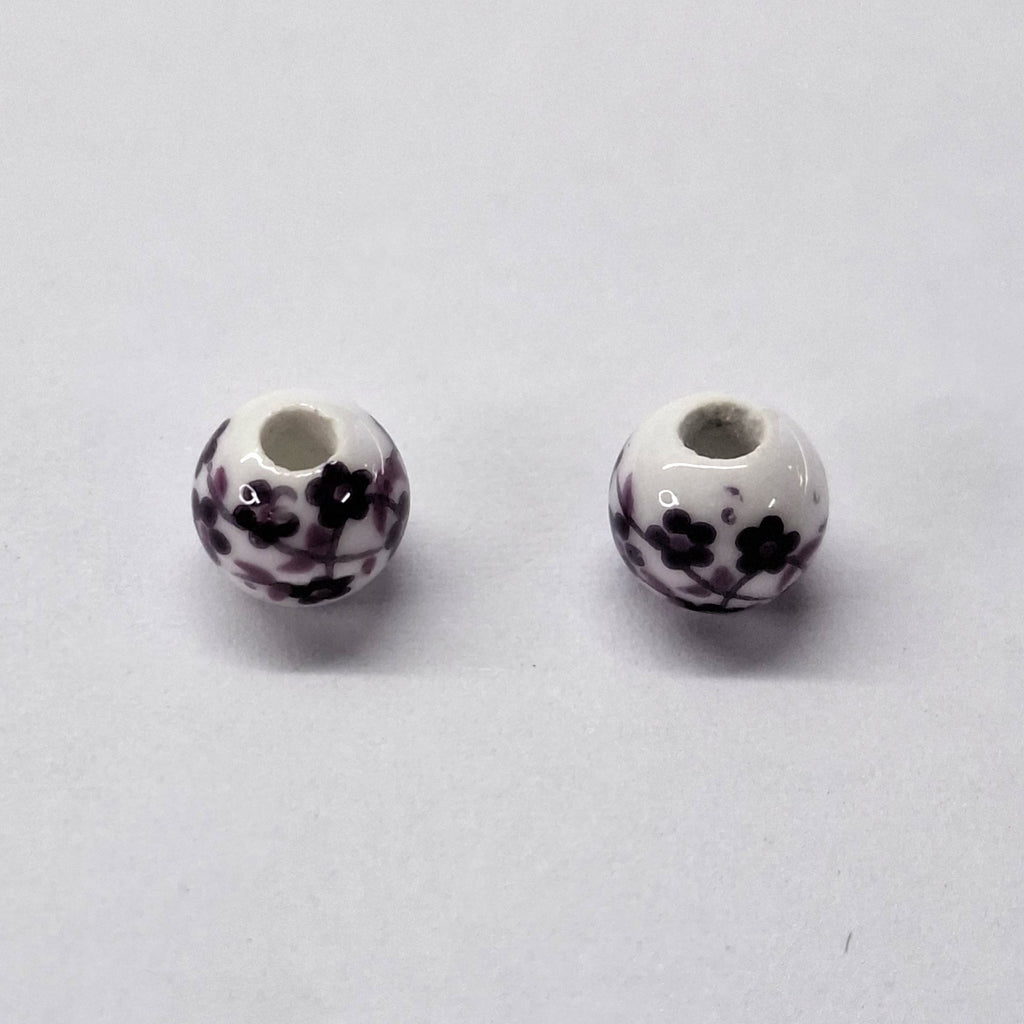 Porcelain Bead 6mm Round Purple Handmade Hole 2mm per each