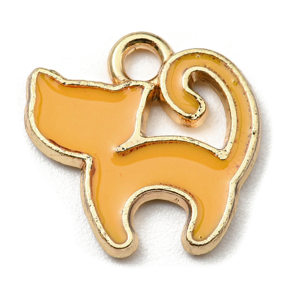 Charm Cute Kitty 13x13 Orange Enamel CNLF Gold