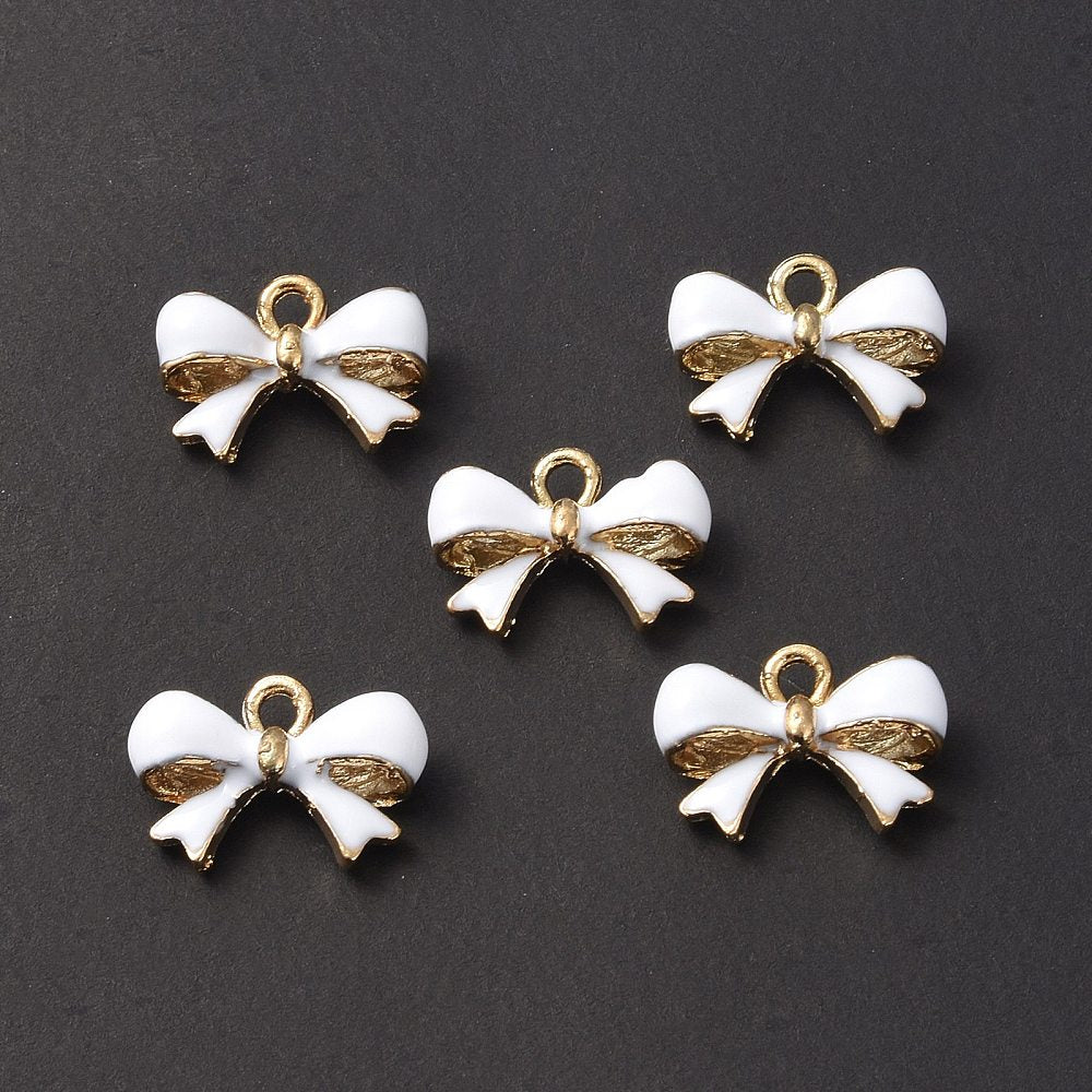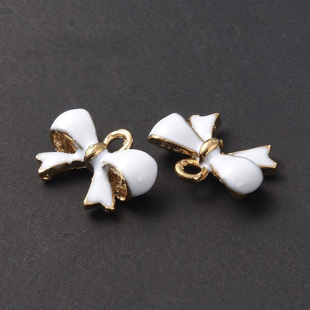 Charm Bow Pearl White Enamel 11.5x16mm LCF Gold