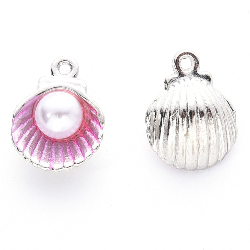 Charm Pearl in Shell 14.5x11.5 Pink Enamel CLF Platinum