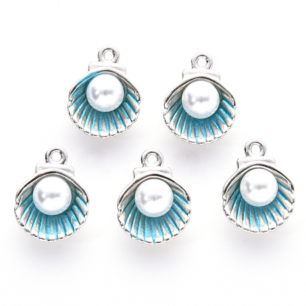 Charm Pearl in Shell 14.5x11.5 Blue Enamel CLF Platinum