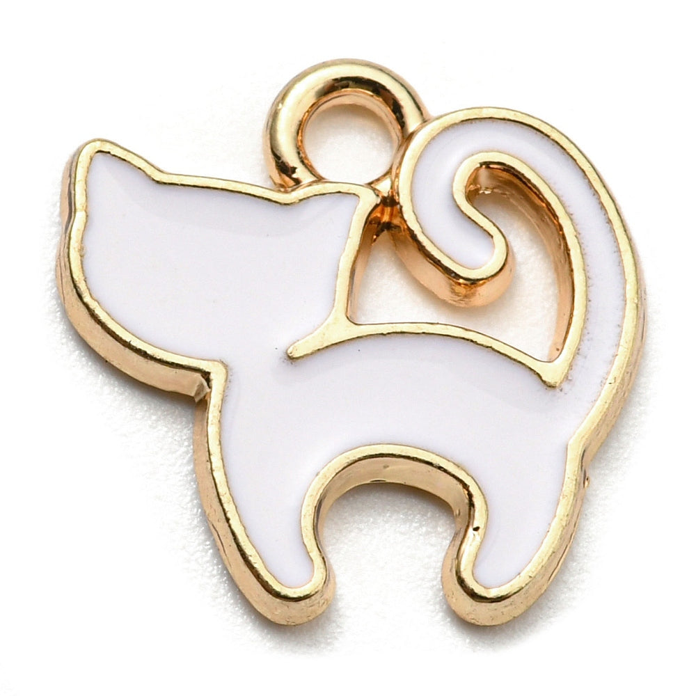 Charm Cute Kitty 13x13 White Enamel CNLF Gold