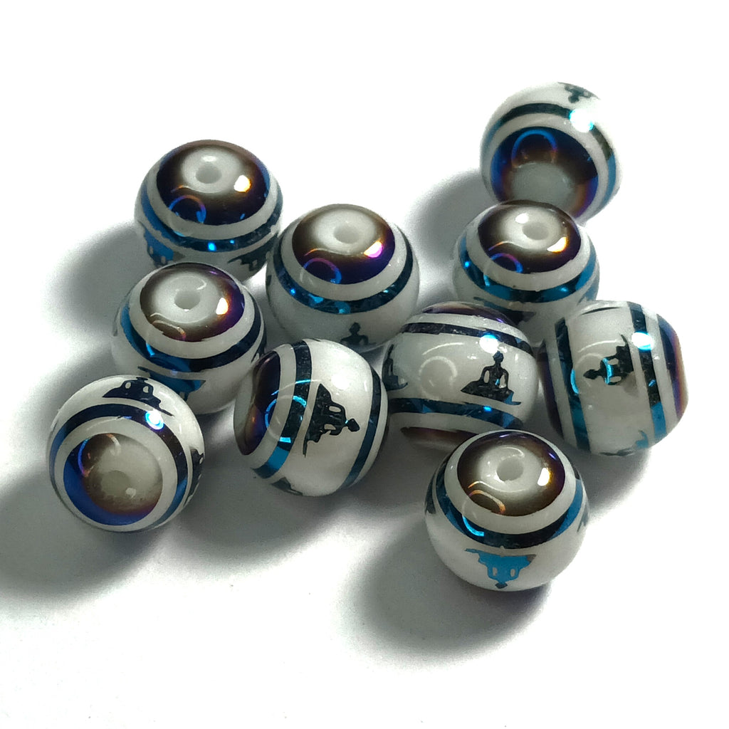 Lampwork Chakra Style Blue Round 8x7.5mm Each