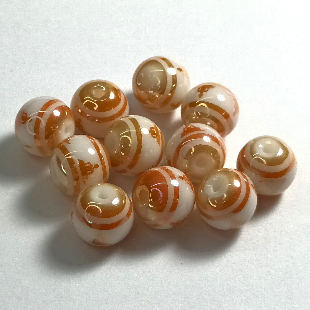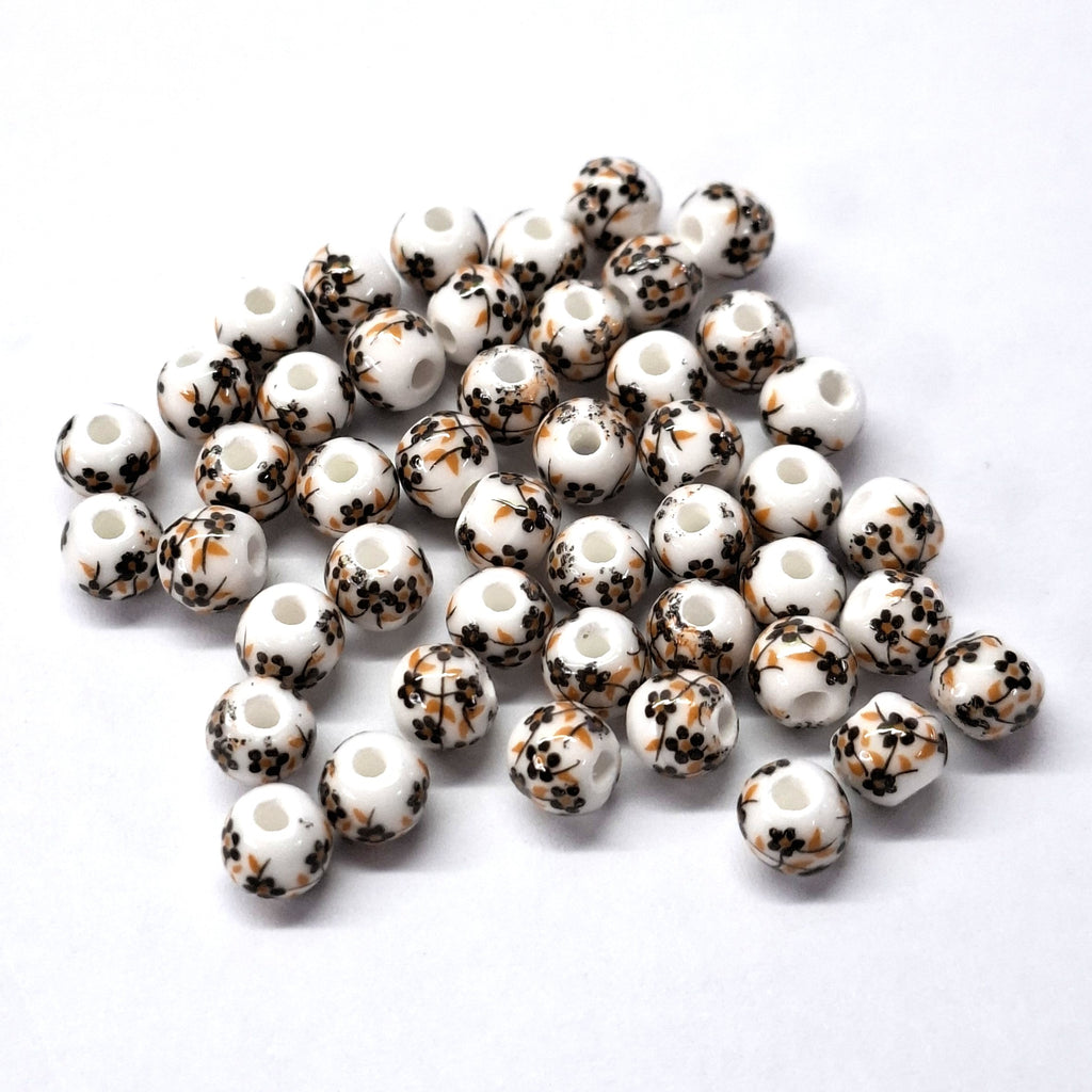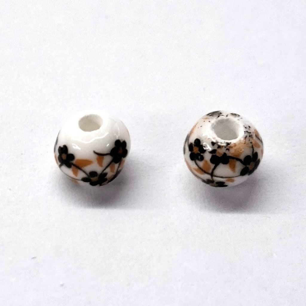 Porcelain Bead 6mm Round Orange/Brown Handmade Hole 2mm per each