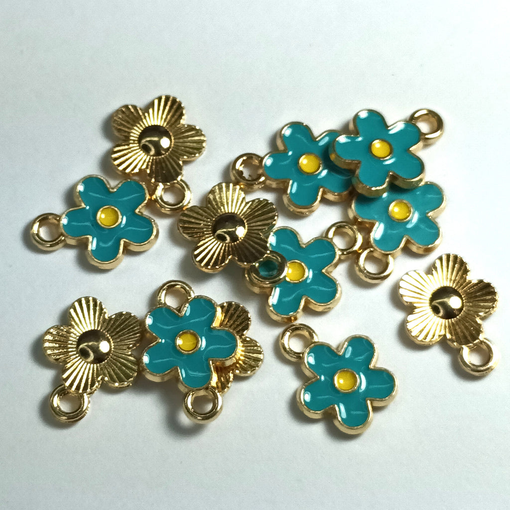 Charm Funky Heart Blue Enamel 10x9 Light Gold