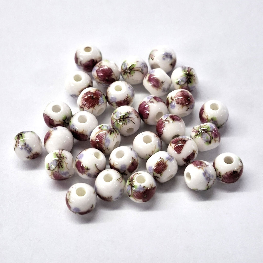 Porcelain Bead 6mm Round Pink/White Handmade Hole 2mm per each