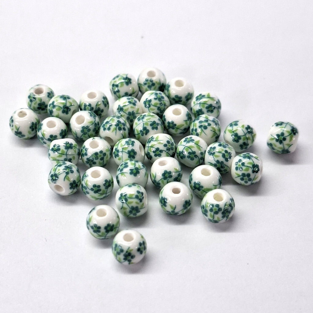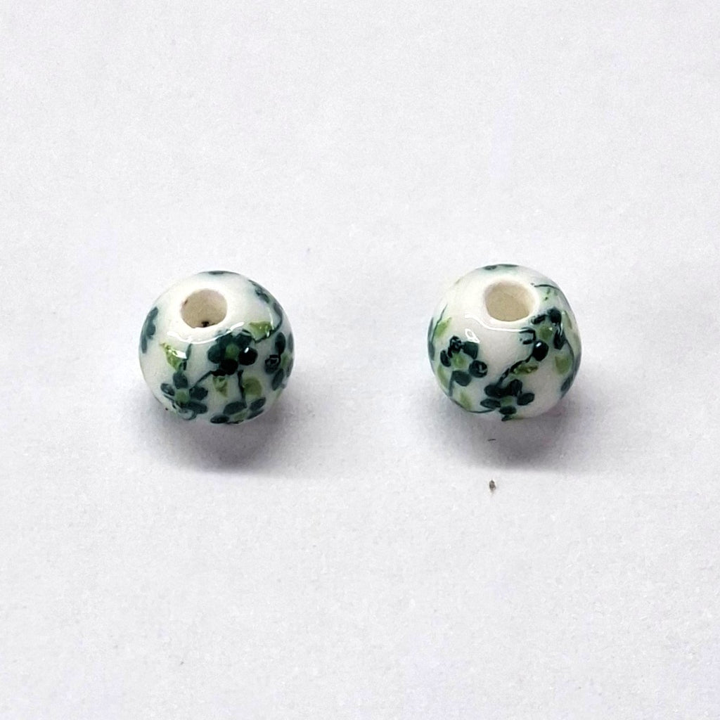 Porcelain Bead 6mm Round Green Handmade Hole 2mm per each
