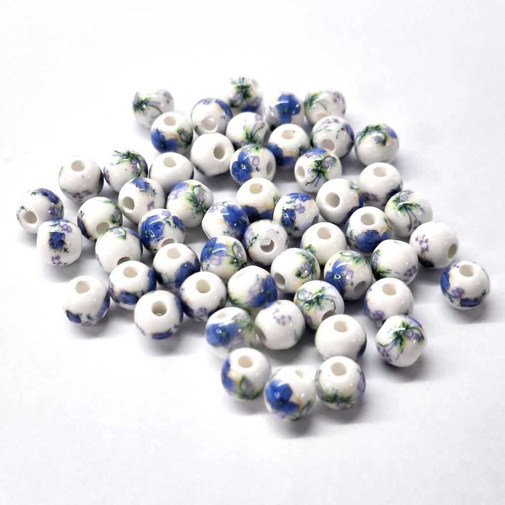 Porcelain Bead 6mm Round Blue/Green Handmade Hole 2mm per each