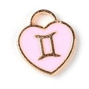 Charm Gemini Heart Pink Enamel 14x12 Light Gold