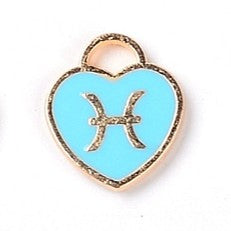 Charm Pisces Heart Sky Blue Enamel 14x12 Light Gold