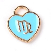 Charm Virgo Heart Sky Blue Enamel 14x12 Light Gold
