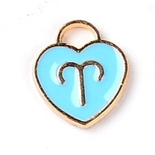Charm Aries Heart Sky Blue Enamel 14x12 Light Gold