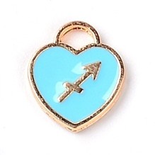 Charm Sagittarius Heart Sky Blue Enamel 14x12 Light Gold