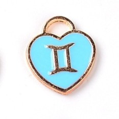 Charm Gemini Heart Sky Blue Enamel 14x12 Light Gold